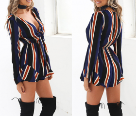 Deep V Chiffon Stripe Rom..
