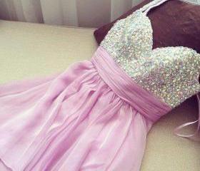 Glitter Pink Prom Dress